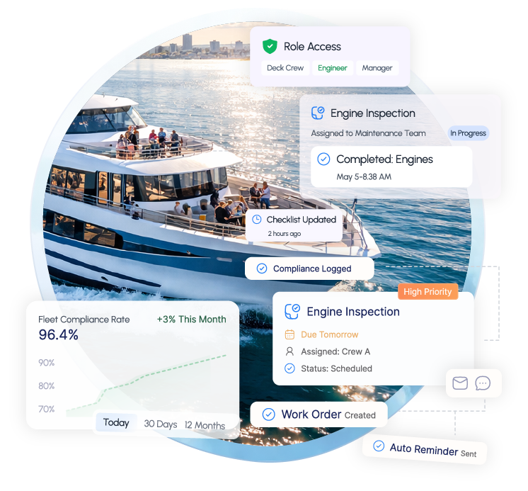 Purpose-built software for tour boats, excursion vessels, water taxis, and passenger operations that need to stay compliant, on schedule, and guest-ready — every single day.
