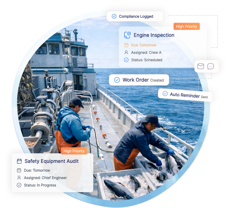 Purpose-built solutions for fishing vessels, cargo ships, ferries, tugs, and charter operations that need to reduce downtime, stay compliant, and maximize operational efficiency