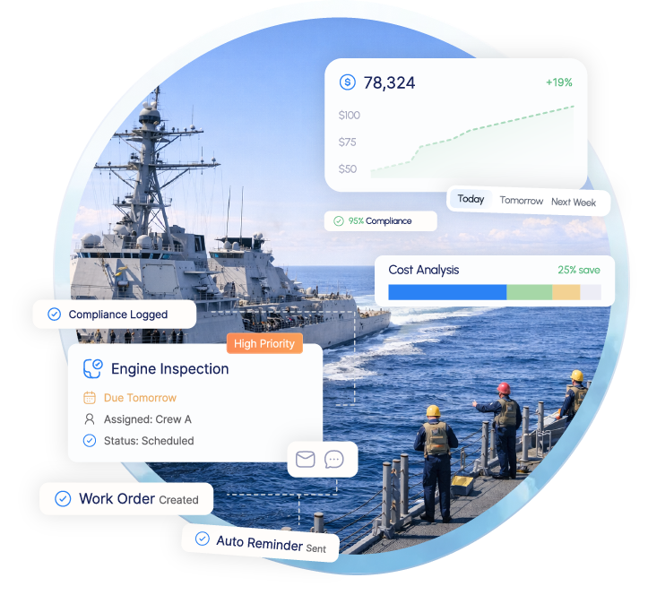 - Automated compliance tracking for inspections, certifications, and safety drills